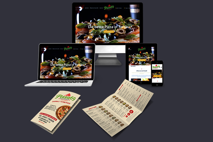 Pizzeria Webseite mit Lieferdienst + Flyer und Menükarte